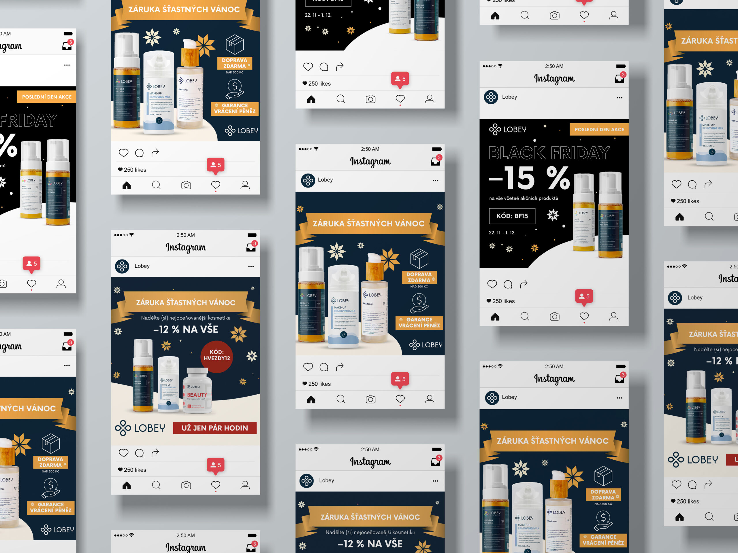 Vytvářím vizuály pro online kampaně, sociální sítě, webovou grafiku a digitální komunikaci. Dbám na čitelnost, konzistenci a styl, který vychází z vaší značky a zapadá do celkové vizuální identity.